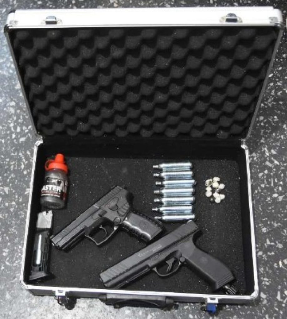 En el registro, los efectivos incautaron un maletín que contenía un arsenal de aire comprimido: